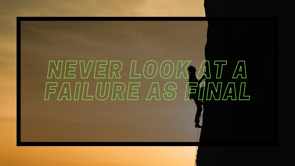 If that seems impossible for you sometimes, here’s what you need to start doing. Never look at a failure as the final result. Don’t let some hardship or difficulty be the final chapter in your story. Or, as famous author F. Scott Fitzgerald said …